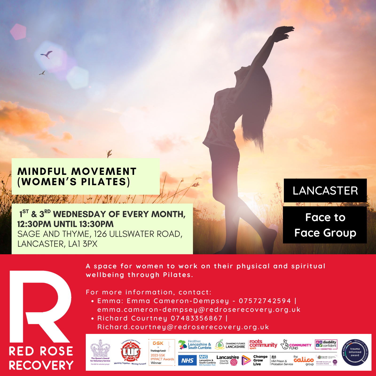 • Emma Cameron-Dempsey – 07572742594 | emma.cameron-dempsey@redroserecovery.org.uk